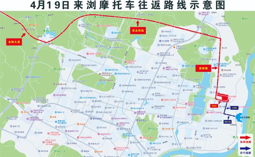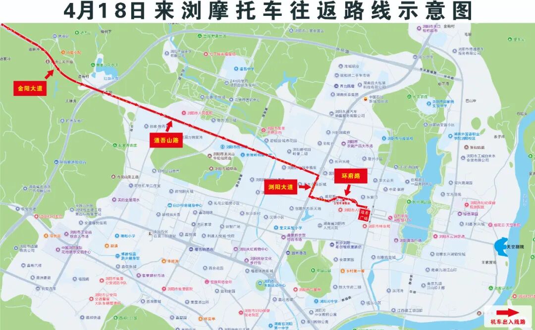 (二)2026年4月18日,来浏摩托车经金阳大道-道吾山路-浏阳大道-环府路驶入政东广场指定停车区域。活动结束后原路返回。